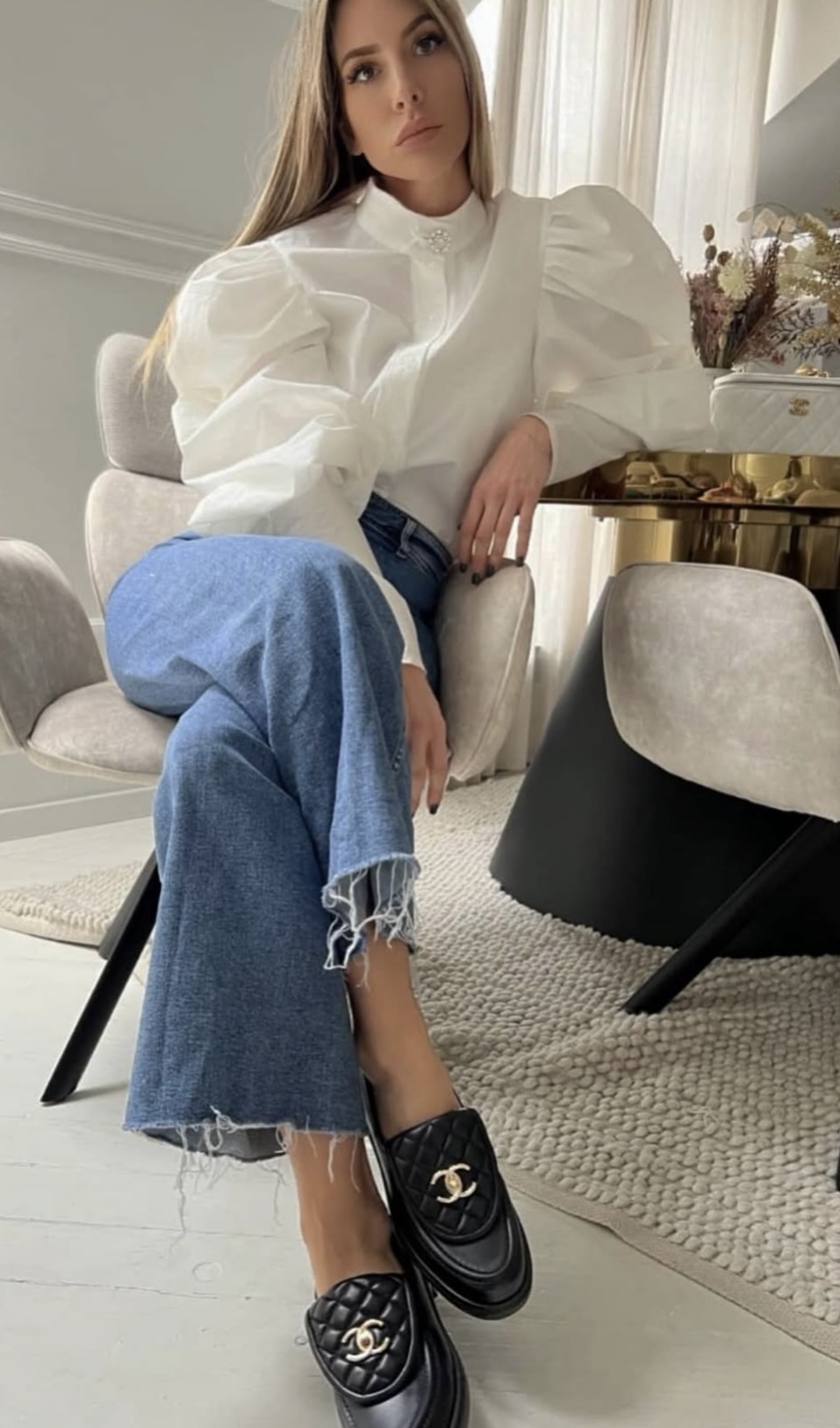 Jeans big flower blouse