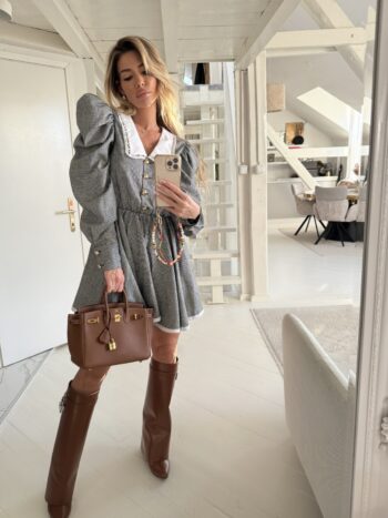 Pepita grey white collar blouse