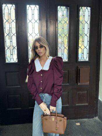 Bordo white collar blouse
